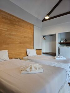 ภายในห้องก็เลยโล่งและปลอดโปล่งมาก มีพื้นที่ใช้สอยให้เราได้เดินอย่างเต็มที่ ในส่วนของความบันเทิงก็ครบครัน อาทิ คาราโอเกะ โต๊ะพูล Wifi สำหรับทุกห้อง ถือว่าเหมาะกับการจัดปาร์ตี้มากทีเดียว เพราะสามารถปิ้งย่าง BBQ บนส่วนระเบียงเพื่อรับลมและบรรยากาศชายหาดบางเสร่ได้แบบเต็มอิ่ม ไม่ต้องกังวลเลยว่าจะคับแคบหรืออึดอัด มีพื้นที่ส่วนกลางให้ใช้ได้อย่างเหลือเฟือเลย