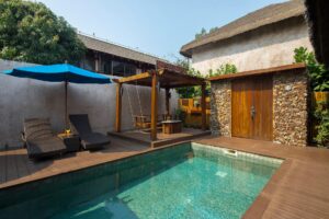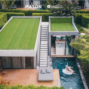 พูลวิลล่าขนาด 2 ห้องนอน ท่ามกลางบรรยากาศสุดร่มรื่น ล้อมรอบด้วยธรรมชาติและโทนสีเขียวเป็นหลัก ในส่วนของห้องพักก็มาครบทั้งเฟอร์นิเจอร์ที่มาในธีมโทนสีเปลือกไม้ ห้องนอน และห้องน้ำในตัว ไฮไลต์ของที่นี่อยู่ที่สระว่ายน้ำแบบ Indoor เล่นน้ำกันในร่มไม่ต้องกลัวผิวเสีย