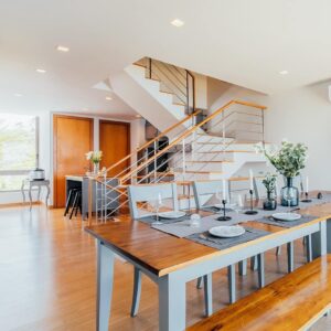 มาที่สไตล์การตกแต่งกันบ้าง สไตล์การตกแต่งของที่นี่ค่อนข้างมีความเฉพาะตัวเป็นพิเศษ ตัวหลังคาทำจากระแนงไม้ บวกกับเน้นเฟอร์นิเจอร์ไม้เป็นหลัก ทำให้รู้สึกเหมือนกำลังอาศัยอยู่ในกระท่อมที่ผสมผสานความโมเดิร์นลงไปได้อย่างพอดี เหมาะมากกับการพักผ่อนในวันหยุด